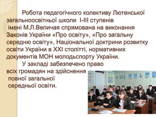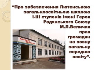 Попельнюх А.Ф.); вхідні двері школи (Лютенське