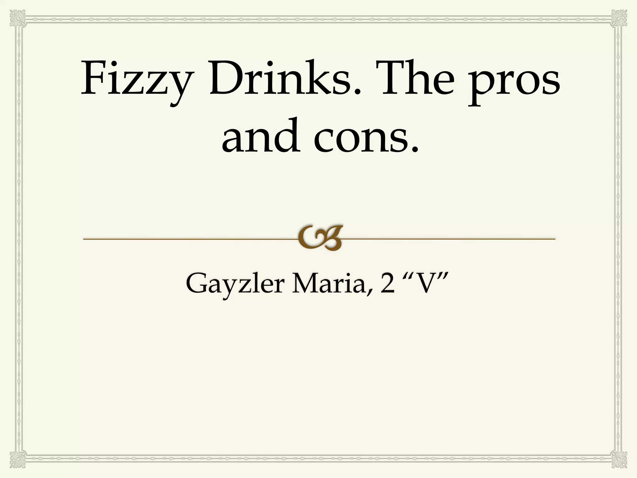 The document outlines the tasks, aim, and components of a study on fizzy drinks. The tasks are to analyze media coverage of fizzy drinks, provide a history, prove they are harmful to health, conduct a student survey, and inform students. The aim is to study fizzy drinks' health impacts. Fizzy drinks contain carbon dioxide, acid, sugar or sweeteners, preservatives, coloring, flavorings, and water. The document also details the results of the student survey which showed most students drink fizzy drinks sometimes but are less likely to after learning about the health risks.