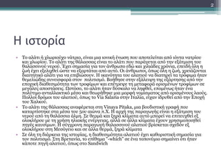 τις αλυκές, μετά από εξάτμιση του θαλασσινού νερού με τη βοήθεια φυσικών φαινομένων