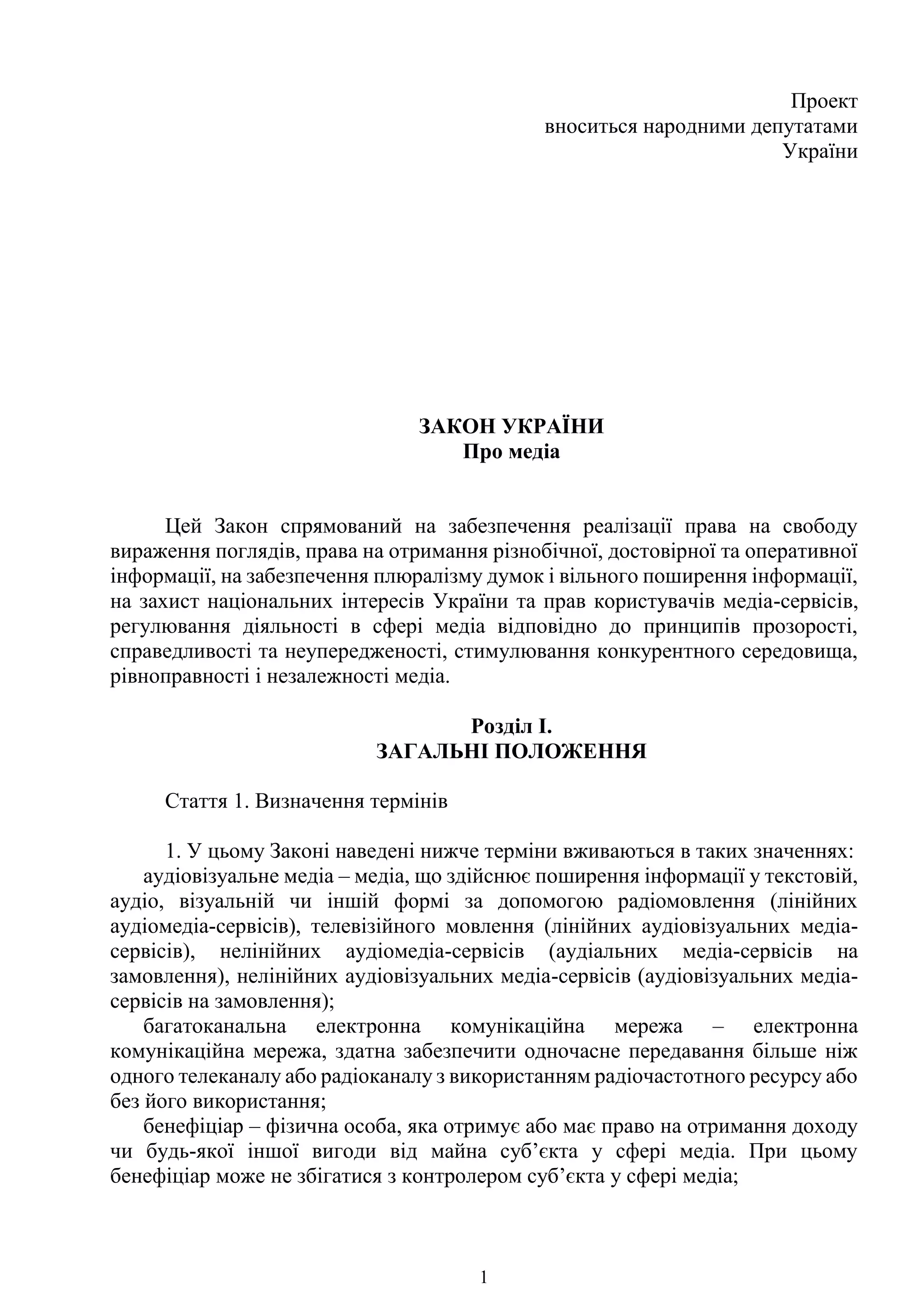 Цей Закон спрямований на забезпечення реалізації права на свободу вираження поглядів, права на отримання різнобічної, достовірної та оперативної інформації, на забезпечення плюралізму думок і вільного поширення інформації, на захист національних інтересів України та прав користувачів медіа-сервісів, регулювання діяльності в сфері медіа відповідно до принципів прозорості, справедливості та неупередженості, стимулювання конкурентного середовища, рівноправності і незалежності медіа.