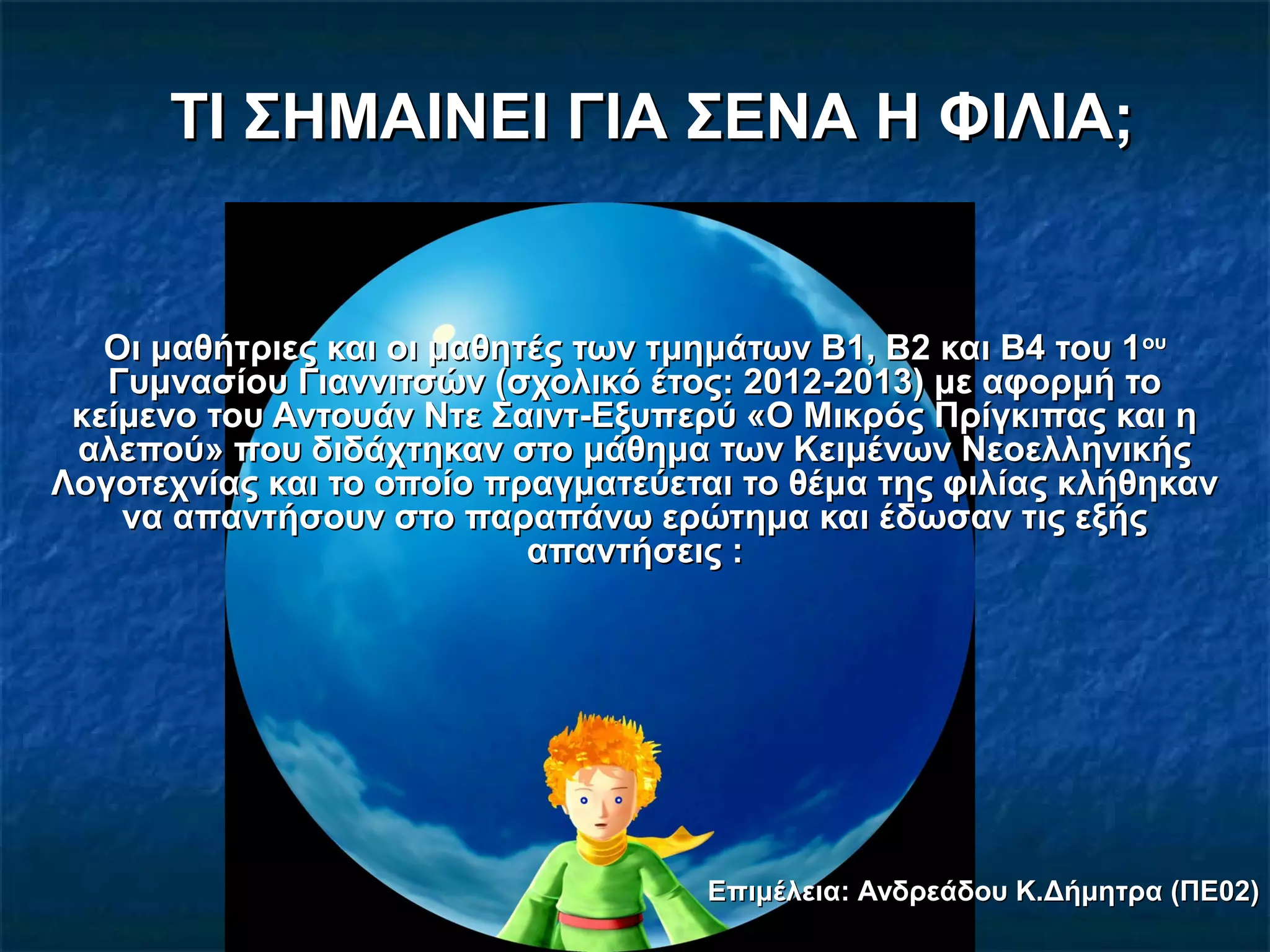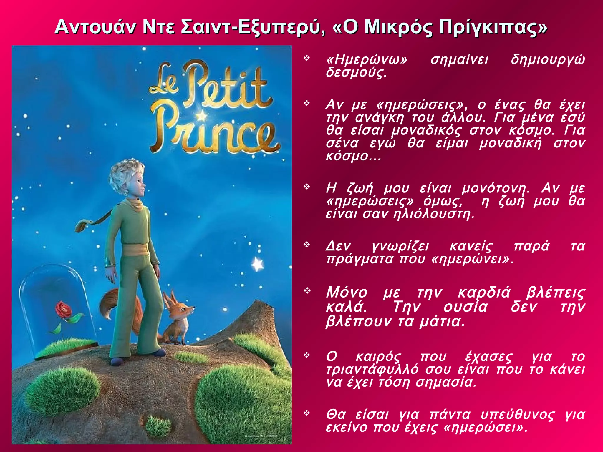 κείμενο του Αντουάν Ντε Σαιντ-Εξυπερύ «Ο Μικρός Πρίγκιπας και ηκείμενο του Αντουάν Ντε Σαιντ-Εξυπερύ «Ο Μικρός Πρίγκιπας και η