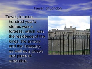 The Tower of London served for 900 years as a fortress, residence for kings, armory, treasury, prison, and place of execution. The National Gallery has one of the largest collections of Western European paintings, though it is hard to believe it started with only 38 paintings. St. Paul's Cathedral's magnificent dome, built after the original burned down in the Great Fire of London, has been a notable landmark. Madame Tussauds wax museum was established in London by sculptor Marie Tussaud and has branches in 10 other cities. The Greenwich Observatory was founded by King Charles II to study astronomy and fix longitude measurements. Tower Bridge, sometimes confused with London Bridge upstream, is an iconic drawbridge in London that opened