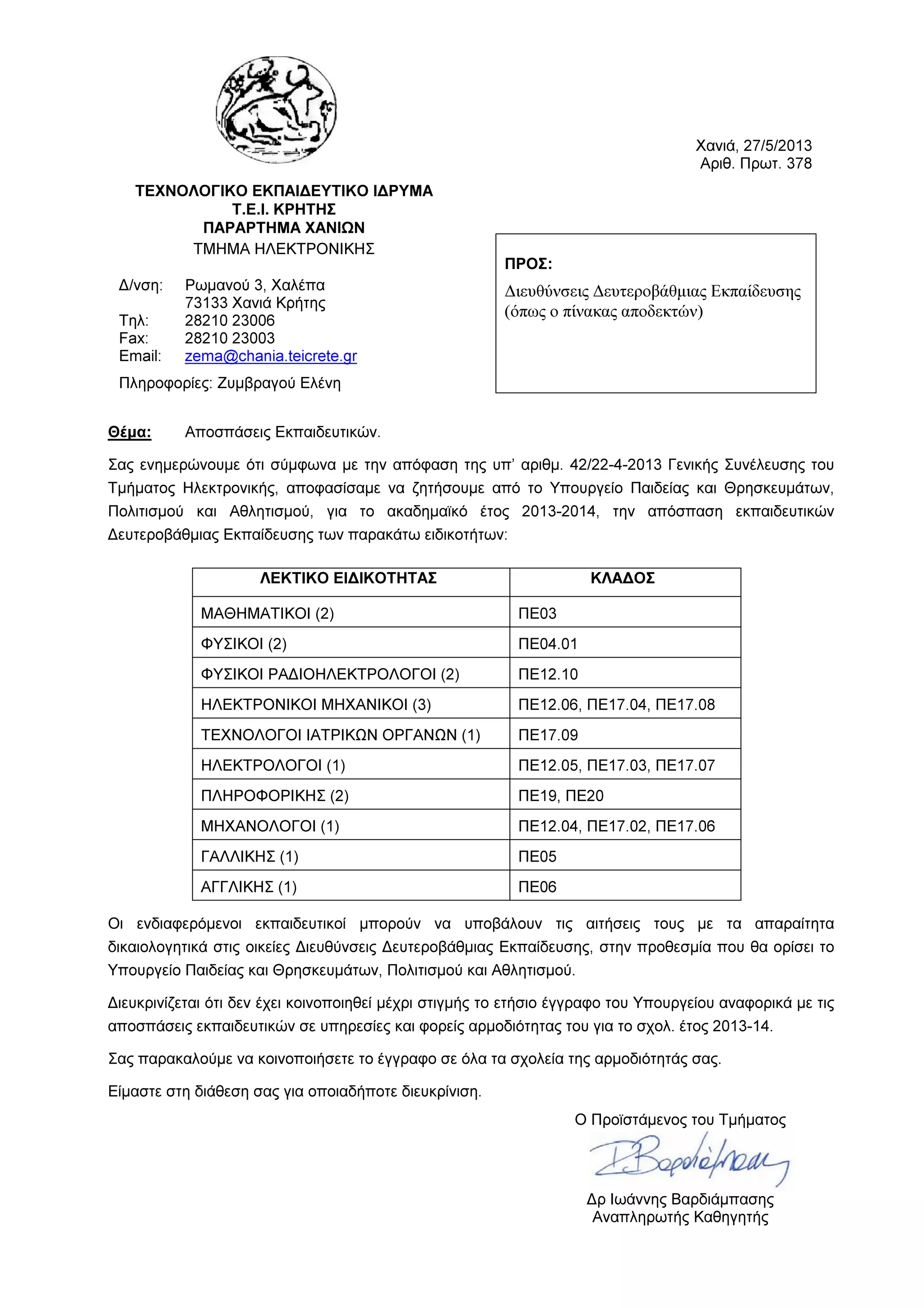 Αριθ. Πρωτ. 378