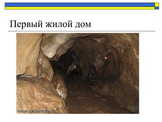 Документ описывает истоки архитектуры, начиная с первобытных жилищ из костей мамонта и переходя к мегалитическим сооружениям различных эпох. Упоминаются примеры таких памятников, как менгиры, дольмены и кромлехи, а также их культурное и религиозное значение. Документ также включает практическое задание по исследованию известных памятников и их зарисовке.