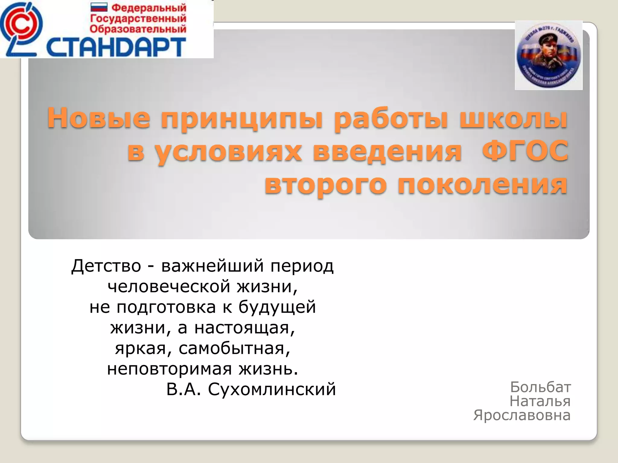 Документ описывает новые принципы работы школы в условиях внедрения федерального государственного образовательного стандарта (ФГОС) второго поколения, акцентируя внимание на важности детства как уникального периода жизни. Основные изменения включают личностную ориентацию, вариативное содержание образовательных программ и усиление воспитательной функции образования через разнообразные внеурочные активности. Также представлена модель выпускника, которая подчеркивает значимость социальной адаптивности, креативности и интеллектуального развития.