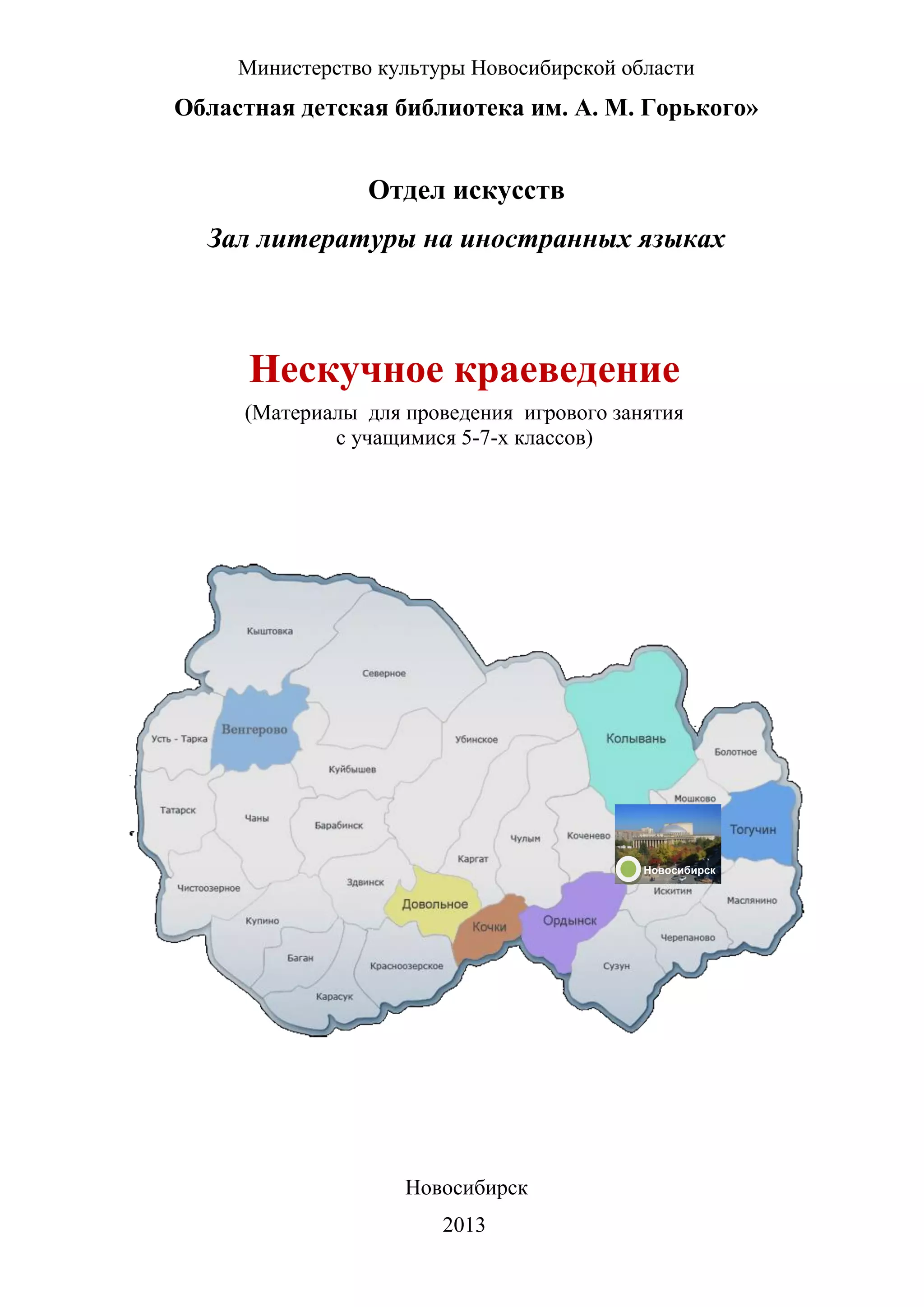 Документ описывает методы и принципы увлекательного проведения мероприятий по краеведению для учащихся 5-11 классов в Новосибирской области, акцентируя внимание на игровых формах занятий. В нем предлагаются разнообразные задания и вопросы, способствующие интересу к истории и культуре региона, а также развитию критического мышления у детей. Также подчеркивается важность систематической работы библиотек и педагогов для сохранения интереса к краеведению в долгосрочной перспективе.