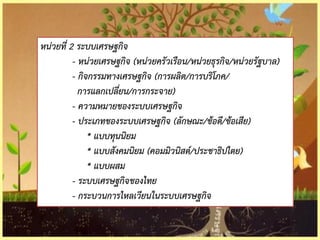 หน่วยที่ 2 ระบบเศรษฐกิจ