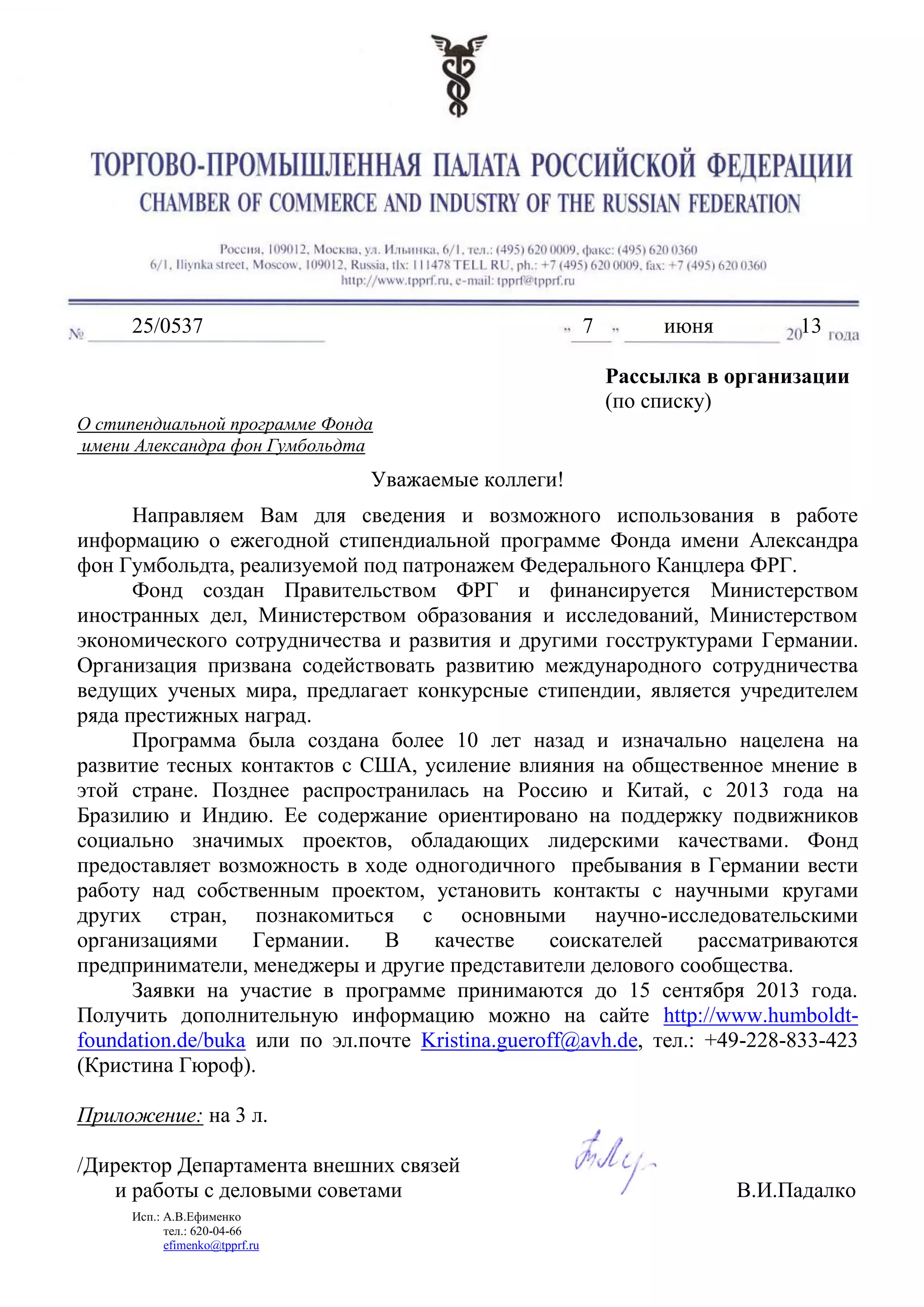 The document provides information about the German Chancellor Fellowship Programme run by the Alexander von Humboldt Foundation. It offers one-year fellowships in Germany for young professionals from the US, Russia, China, Brazil, and India to conduct independent projects, network with international leaders, and gain experience in Germany. Fellows receive a monthly stipend, language training, and other support. Applications are due by September 15 and selection is based on the applicant's leadership potential and the significance and persuasiveness of their proposed project.
