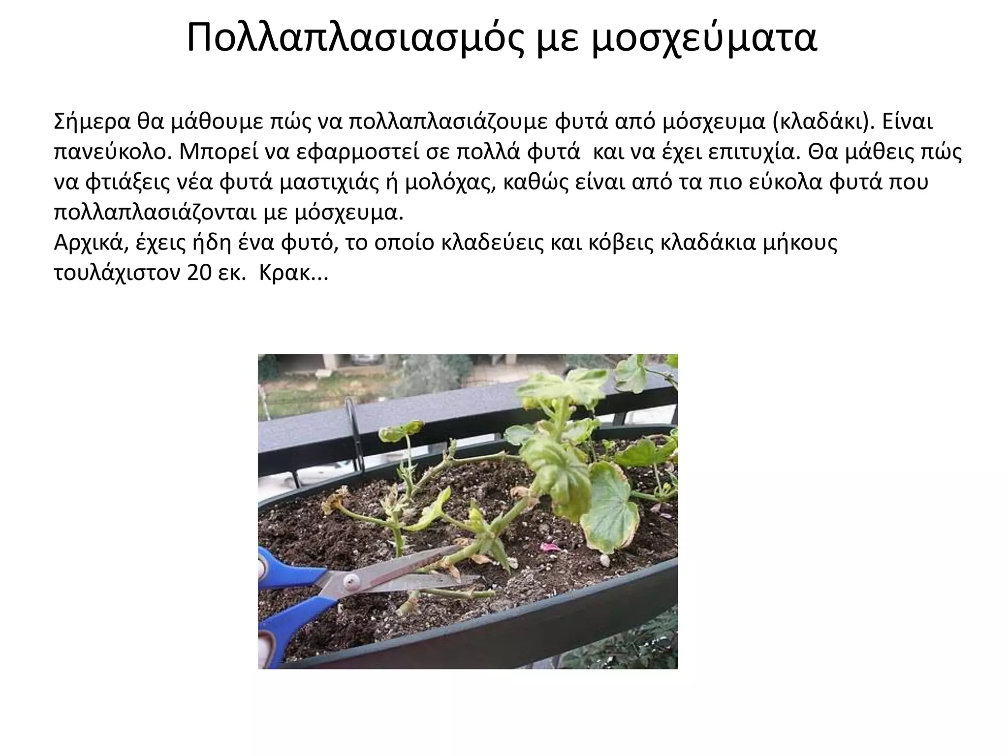 Σιμερα κα μάκουμεπϊσ να πολλαπλαςιάηουμε φυτά από μόςχευμα (κλαδάκι). Είναι