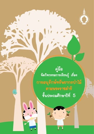 คู่มือจัดกิจกรรมอนุรักษ์ทรัพยากรป่าไม้ตามพระราชดำริ สมเด็จพระเทพรัตนราชสุดา ฯ สยามบรมราชกุมารี ฉบับพิมพ์เผยแพร่ (ปรับปรุงเนื้อหาเพิ่มเติม 1.กษัตริย์นักอนุรักษ์ 2.ประวัตินายแพทย์บุญส่ง เลขะกุล (บิดาแห่งการอนุรักษ์ของไทย) 3.ประวัตินายสืบ นาคะเสถียร (ชีวิต...เพื่อผืนป่า) )