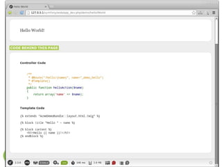 Symfony is a full-stack PHP framework and set of reusable PHP components that provides tools and libraries to build web applications. The document introduces Symfony and explains how to install it using Composer, describes some key components like routing and dependency injection, and encourages readers to try it for themselves.