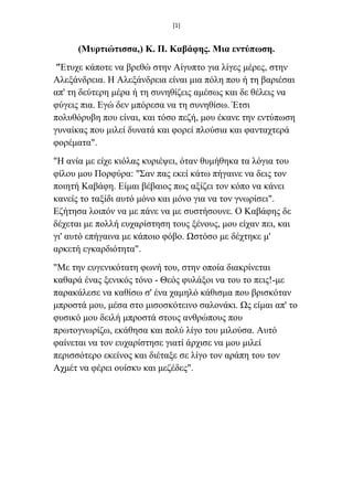 (Μσρτιώτισσα,) Κ. Π.Καβάυης. Μια εντύπωση.