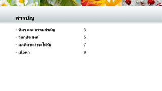 ความสาคัญ วัตถุประสงค์ ผลที่คาดว่าจะได้รับ เนื้อหา 3 5 7 9