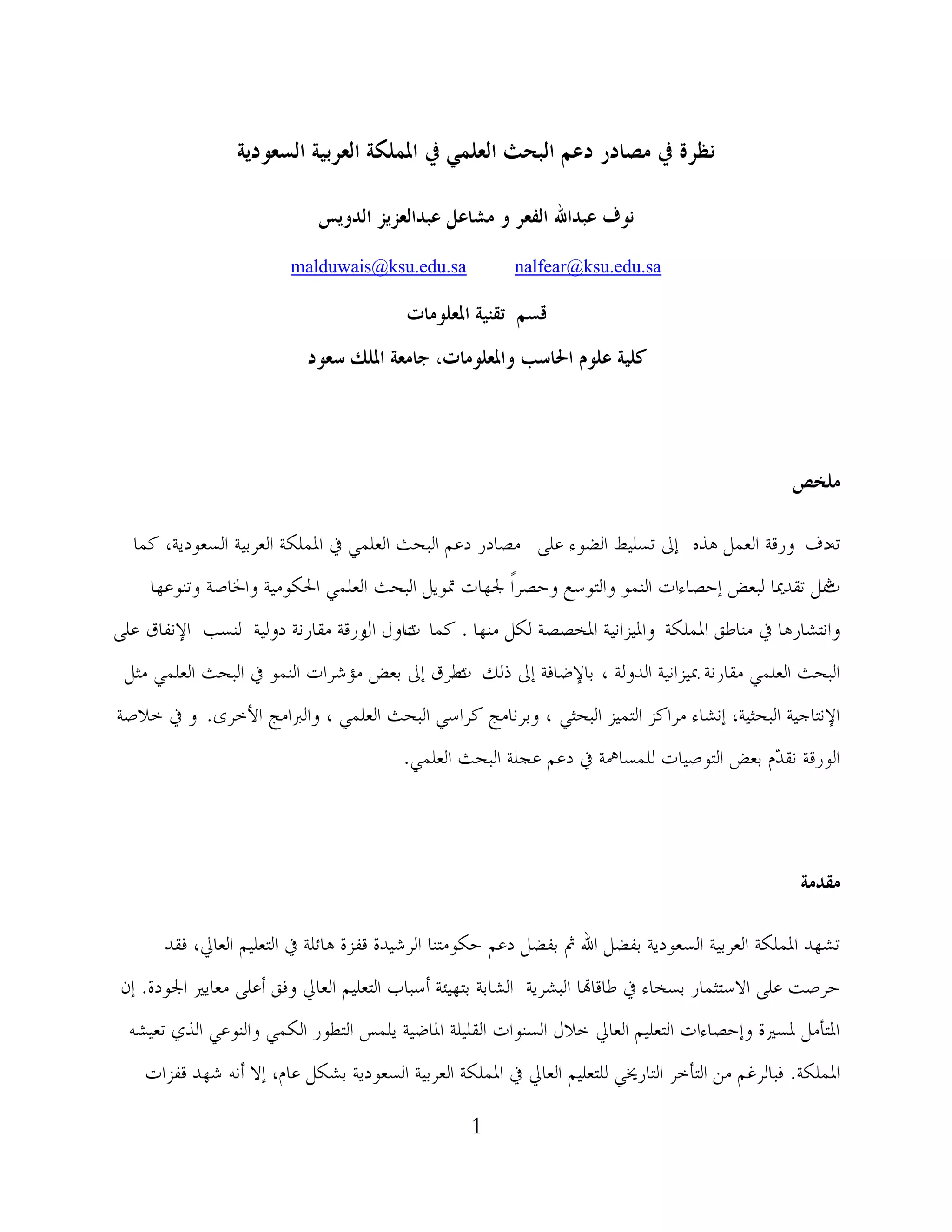 نظرة في مصادر دعم البحث العلمي في المملكة العربية السعودية