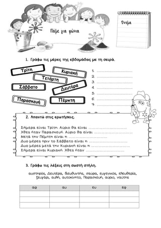 1. Γράφω τιςμέρες της εβδομάδας με τη σειρά.