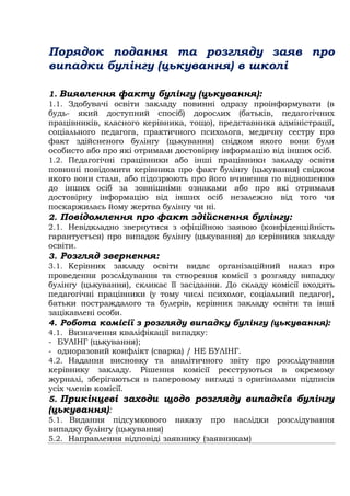 Порядок подання та розгляду заяв про випадки булінгу (цькування) в школі