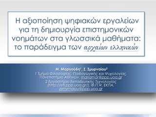 Αντικείμενο της παρούσας εργασίας αποτελεί η παρουσίαση του σχεδιασμού του εκπαιδευτικού λογισμικού «Συμπληρώνω και Συντάσσω», στο πλαίσιο της ανάδειξης της αποτελεσματικότητας της χρήσης ψηφιακών διαδραστικών μέσων στη δημιουργία επιστημονικών νοημάτων από τους ίδιους τους μαθητές. Στο πλαίσιο της παρουσίασης του λογισμικού γίνεται αναφορά σε ένα πιθανό τρόπο αξιοποίησής του από τους μαθητές μιας σχολικής τάξης για την ανάδειξη του μαθήματος των Αρχαίων Ελληνικών και πιο συγκεκριμένα του Συντακτικού της Αρχαίας Ελληνικής Γλώσσας.