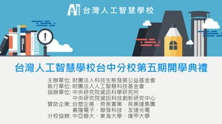Taiwan Artificial Intelligence School's Taichung branch held its fifth semester opening ceremony, supported by various foundations, institutes, and businesses. The document details the incorporation of AI into Taiwanese industries, the challenges faced, and the need for talent development and infrastructure improvement. Key themes include the impact of AI on sectors such as legal, healthcare, and manufacturing, emphasizing predictive maintenance and optimization.