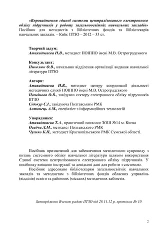 обліку підручників у роботу загальноосвітніх навчальних закладів»