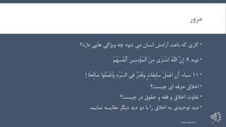 می انسان آرامش باعث که کاریهاییدارد؟ توبه9:َّنِإَهَّلالَىرَتْشاَنِمَنِینِمْؤُمْلاْمُهَسُفْنَأ 11سباء:ِنَأْلَمْعاٍتَاغِبَاسْرِِّدَقَوِیفِدْرَِّسالُوالَمْعَاوًاحِلَاصإ چیست؟ ای حرفه اخالق چیست؟ در حقوق و فقه و اخالق تفاوت نمایید مقایسه دیگر دید دو با را اخالق به توحیدی دید. www.nekoo.ir 2
