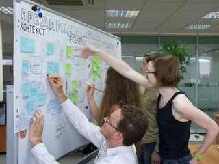 Документ содержит обзор проекта по разработке интерфейсов, в котором было создано 16 экранов и 12 всплывающих окон. Он подчеркивает важность командной работы и сокращения итераций для более эффективного дизайна, а также включает мнения известных дизайнеров о процессе проектирования. Основные темы включают прототипирование, структурирование информации и использование методологий, таких как design thinking.