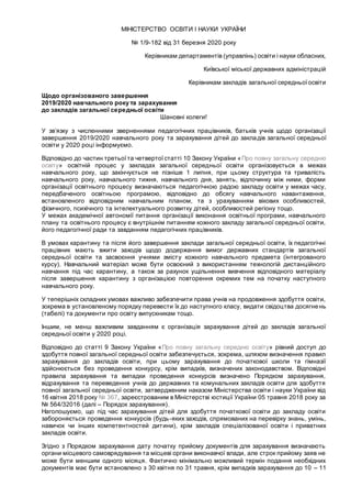 завершення 2019/2020 навчального року та зарахування дітей до закладів загальної середньої