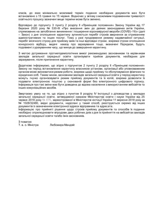 юридичних осіб. Таким чином, засновники закладів загальної середньоїосвіти у період карантину