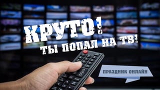 КРУТО! Ты попал на ТВ!!! На что это похоже? Это похоже на телевидение! В настоящий момент мы можем оказаться на ТВ благодаря таким программам как Zoom. Нужно всего лишь согласовать программу телепередач. Вам на выбор новостные программы, музыкальные конкурсы и познавательные викторины. Телеведущий будет говорить именно с Вами с экрана из празднично украшенной студии. Все гости будут вовлечены в празднование и примут активное участие в торжестве. Телевидение становится по настоящему интерактивным, заглянем за кулисы? Программа передач праздничного канала: Утренняя почта Пока все дома Что? Где? Когда? Один в Один Угадай мелодию Устами младенца Поле Чудес Программа Время Между передачами выступают гости со своими тостами, поздравлениями и сюрпризами. А также транслируются музыкальные клипы по вкусу Юбиляра. 15 минут музыки (чтобы перекусить, выпить, сходить покурить), 15 минут на конкурс. А после программы "Время" подадут торт и можно будет загадать желание! Что нужно для подготовки? Анкета юбиляра Важно понимать, какие интересы, какая биография, о чем можно и нельзя говорить. Несколько фотографий из архива Для викторины «Что? Где? Когда?» понадобится всего десяток фото. Контакты гостей Для того, чтобы обсудить подготовку сюрпризов и написать примерный тайминг по выступлениям и тостам. Какие еще активности можно интегрировать в праздничный вечер? Квиз Викторина на самые разные темы, где можно играть или разделившись на команды или блеснуть умом сообща. Угадайка Темы могут быть совершенно разными – угадай, кто под маской Бэтмена, угадай из какого фильма кадр, угадай песню по картинкам и т.д.