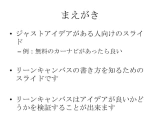 【Running Lean入門】リーンキャンバス作成ワークショップ(簡易版) PDF