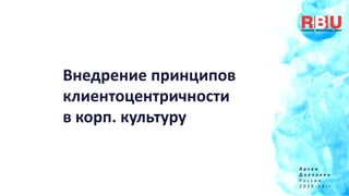 Документ описывает внедрение принципов клиентоцентричности в корпоративную культуру компании 'Арсендалл' в России на 2020-2024 годы. Он включает пять шагов, направленных на повышение вовлеченности сотрудников и улучшение метрик через создание 'клиентоцентричной нервной системы'. Основное внимание уделяется оценке поставщиков и созданию условий для их клиентоцентричности с целью увеличения общего индекса клиентоцентричности корпорации.
