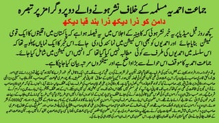 یہ قدم خود ذمہ دار افراد اور کابینہ کے بعض اراکین کی طرف سے اُٹھایا گیا تھا۔ لیکن یہ خبر نشر ہونے کی دیر تھی کہ پورے ملک میں ایک ناقابل فہم شور شرابے کا آغاز ہو گیا۔ پہلے تو وزیر برائے مذہبی امور پیرنورالحق قادری صاحب نے بیان دیا کہ اس پر بحث ہوئی تھی لیکن ابھی کوئی فیصلہ نہیں ہوا۔ آئین پاکستان کے مطابق قادیانی غیر مسلم ہیں۔ پھر چودھری شجاعت حسین صاحب، سپیکر پنجاب اسمبلی پرویز الٰہی صاحب، اور وفاقی وزیر طارق بشیر چیمہ صاحب نے کہا کہ خواہ مخواہ پنڈورا بکس کھول دیا گیا ہے۔ پھر وفاقی وزیرعلی محمد خان صاحب کی طرف سے ایک مختلف بیانیہ سامنے آیا۔ انہوں نے کہا کہ عمران خان صاحب نے تو اس تجویزکی مخالفت کی تھی اور کہا تھا کہ جب تک قادیانی اپنے آپ کو غیر مسلم نہیں سمجھتے اس وقت تک وہ کسی کمیشن کا رکن نہیں بن سکتے۔ اس کے بعد مختلف چینلز نے اس بارے میں پروگرام کرنے شروع کیے۔ اور حسب سابق ان پروگراموں میں کوئی ٹھوس علمی یا قانونی بات کرنے کی بجائے مختلف سیاسی پارٹیوں کے نمائندوں کو بلا کر انہیں اسی طرح لڑایا گیا جس طرح کسی زمانے میں پنجاب کے دیہات میں مرغوں کی لڑائی کے مقابلے کرائے جاتے تھے۔ اس مضمون میں اس بارے میں صرف اُن دو پراگراموں پر تبصرہ کیا جائے گا جو ندیم ملک لائیو کے نام سے سماء نام کے چینل پر5 ؍اور6؍مئی 2020ء کو نشر ہوئے۔ان دو پروگراموں کے میزبان ندیم ملک صاحب تھے اورتحریک انصاف کے صداقت عباسی صاحب، وفاقی وزیرعلی محمد خان صاحب، پیپلز پارٹی کی پلوشہ صاحبہ، اورمسلم لیگ ن کے طلال چودھری صاحب ان پروگراموں میں شامل ہوئے۔تفصیلات بیان کرنے سے پہلے یہ وضاحت ضروری ہے کہ اس مضمون کا مقصد کسی سیاسی بحث میں الجھنا یا کسی سیاسی جماعت پر تنقید کرنا نہیں ہے۔ لیکن جماعت احمدیہ کے خلاف چلائی جانے والی مہم پاکستان کو شدید نقصان پہنچا رہی ہے۔ اس مضمون میں صرف ان امور کی نشاندہی کی جائے گی۔