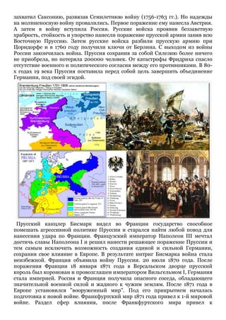 Документ описывает события, предшествующие и саму Вторую мировую войну, начиная с агрессивной политики Пруссии и объединения Германии, и заканчивая ростом фашизма в Италии и приходом Гитлера к власти в Германии. Также рассматриваются причины Первой мировой войны, её последствия и экономические проблемы, которые привели к следующему глобальному конфликту. В итоге, документ анализирует ряд конфликтов, включая гражданскую войну в Испании, подчеркивая их влияние на развитие военных технологий и стратегии.