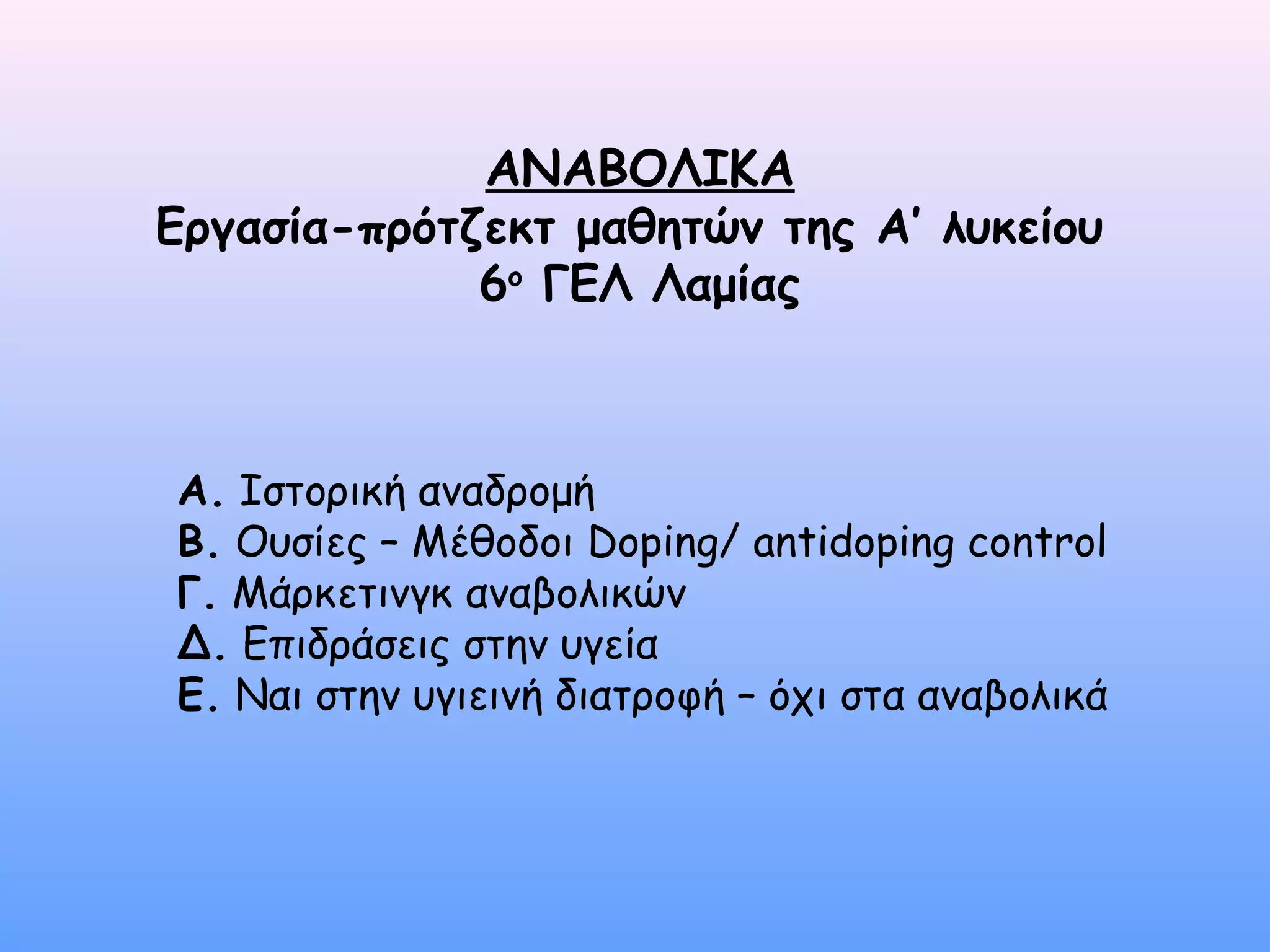 Ε. Ναι στην υγιεινή διατροφή – όχι στα αναβολικά