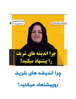 علاقه دبیران اندیشه های شریف به تمام دانش اموزان مدرسه که ۲ ویژگی اصلی دارن فعال هستن و درس خوان