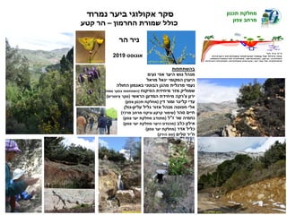 הסקר האקולוגי בחלקה 1 של יער נמרוד נערך ב-156 דונם על גבי שלוש תצורות גאולוגיות של סלעי משקע מתקופת היורא ובמערך של סלעים וולקניים מהקרטיקון התחתון. הוא נעשה ב-10 עומדי יער, והוגדרו בו 12 יחידות צומח. שלב ראשון של הסקר נערך ביער בלבד בתחילת יולי 2018. סקר השוואתי משלים נערך באביב (תחילת מאי 2019) בכל יחידות היער, יער ובשמורה הסמוכה בשטח של 112 דונם, בה הוגדרו 7 יחידות.