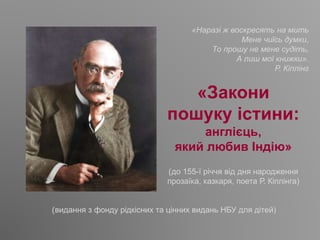 «Закони пошуку істини: англієць, який любив Індію» : (до 155-ї річчя від дня народження прозаїка, казкаря, поета Р. Кіплінга)