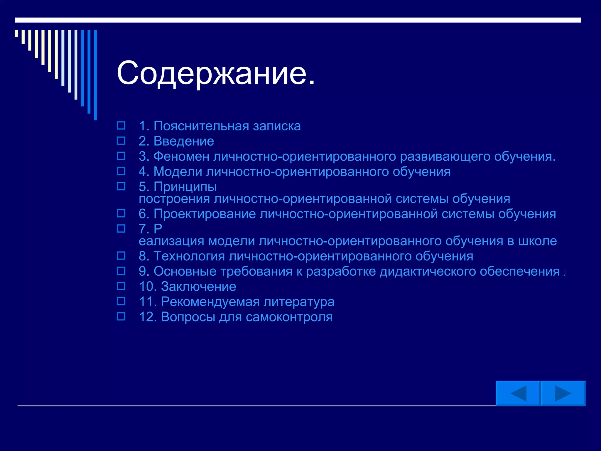 Документ представляет собой пособие для студентов педагогических вузов, посвященное личностно-ориентированному образованию, включая его философию, модели, принципы, технологии и требования к дидактическому обеспечению. Основное внимание уделяется развитию индивидуальности ученика через проектирование и организацию учебного процесса, ориентированного на его уникальный опыт и способности. В заключении подчеркивается значимость личностно-ориентированного обучения в современном образовательном процессе, нацеленного на раскрытие потенциала и самореализацию учащихся.