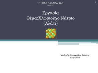 • Τοαλάτι ή χλωριούχο νάτριο, είναι μια ιονική ένωση που αποτελείται από ιόντα νατρίου