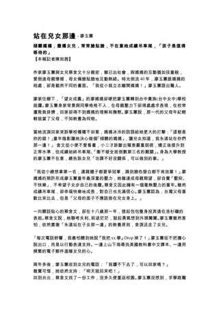 廖玉蕙在育兒過程中致力於成為一位傾聽的母親,支持女兒蔡含文的生活選擇,而不是施加壓力。她反思自己的童年經歷,決定不再重蹈覆轍,讓孩子們在無壓的環境中成長,最終收穫了幸福的三代母女關係。廖玉蕙認為,父母應扮演陪伴而非指導的角色,讓孩子自由探索人生。