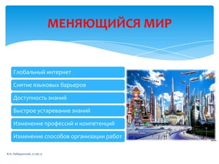 Документ обсуждает современные тенденции в образовании, подчеркивая влияние технологий и необходимость адаптации образовательной системы к быстро меняющемуся миру. Основные темы включают развитие онлайн-образования, изменение потребностей в навыках и важность практического обучения. Выдвигаются вопросы о будущем образования и роли традиционных учебных заведений в новых условиях.
