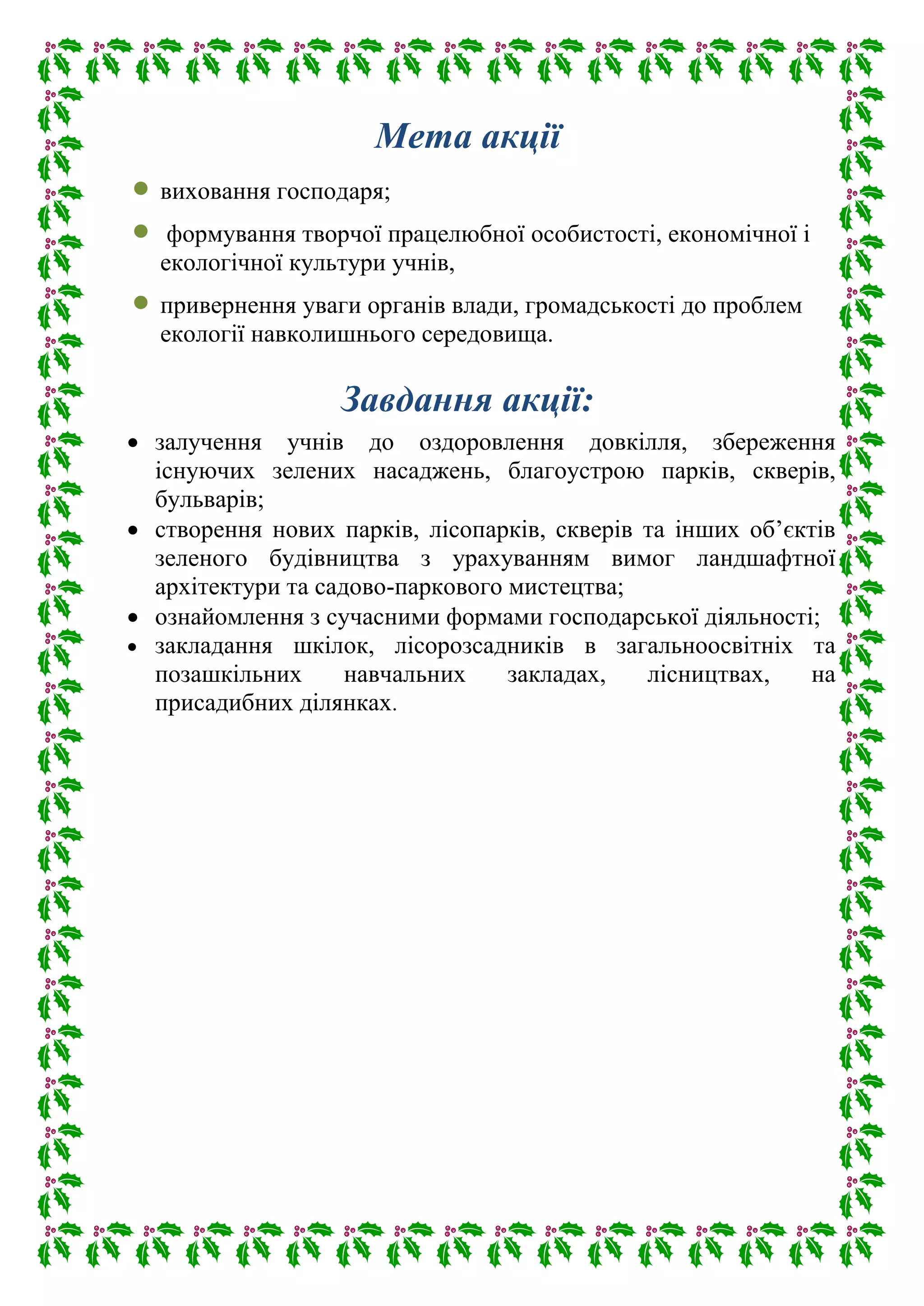 закладання шкілок, лісорозсадників в загальноосвітніх та
