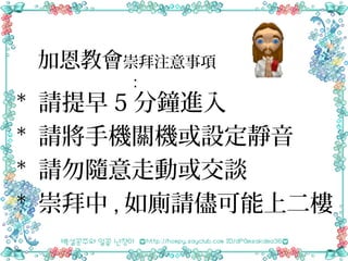 加恩教會崇拜注意事項 : * 請提早 5