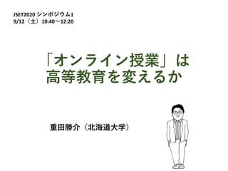 「オンライン授業」は 高等教育を変えるか 重田勝介(北海道大学) JSET2020 シンポジウム1 9/12(土)10:40〜12:20