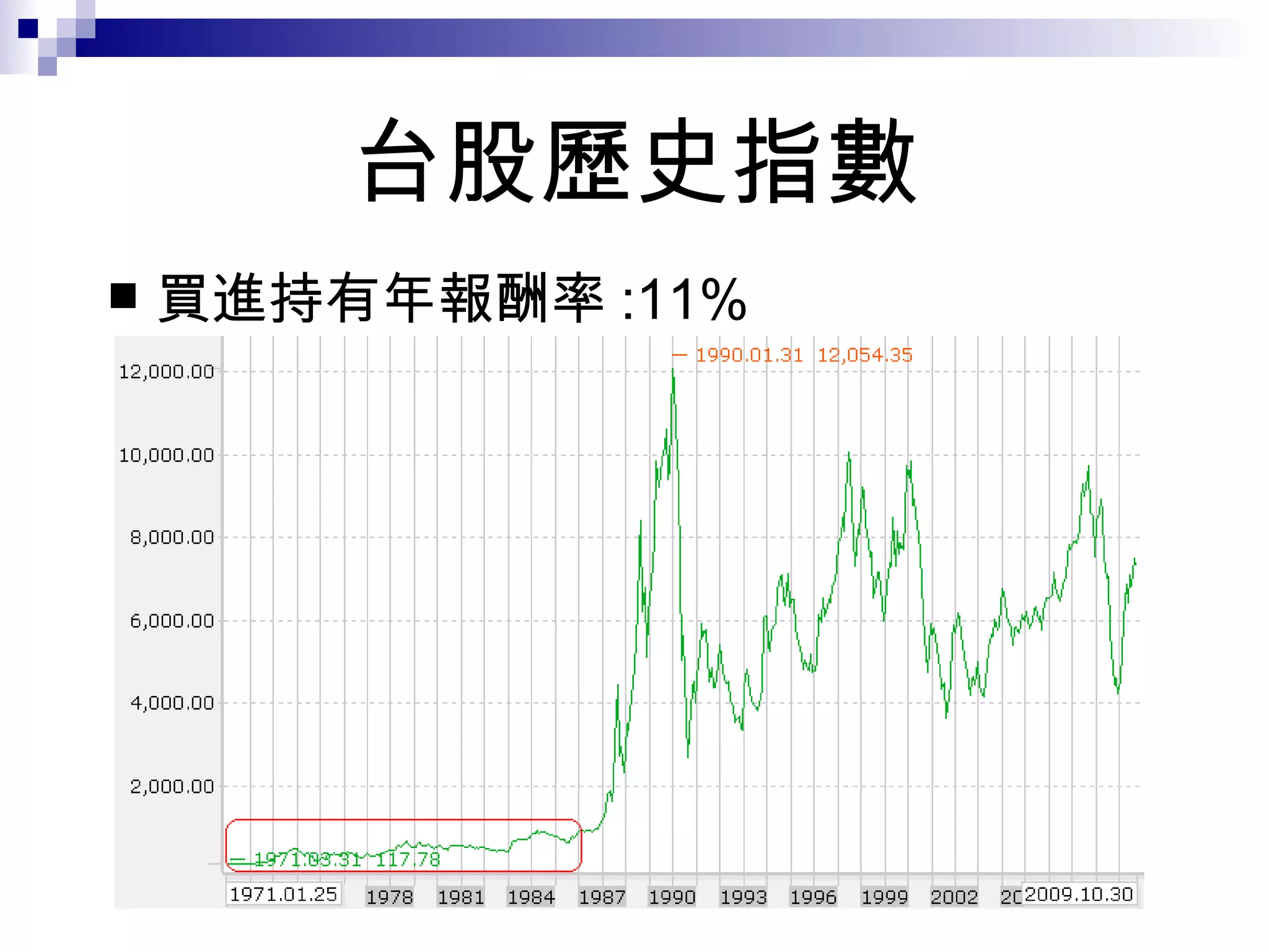 文档探讨了台股投资的历史表现与回报率,使用一条鞭法记录了不同时间段的年报酬率。投资策略强调低交易频率以减少费用,同时建议使用杠杆以提高潜在收益。结论指出长期持有有助于提升回报并避免散户心态。