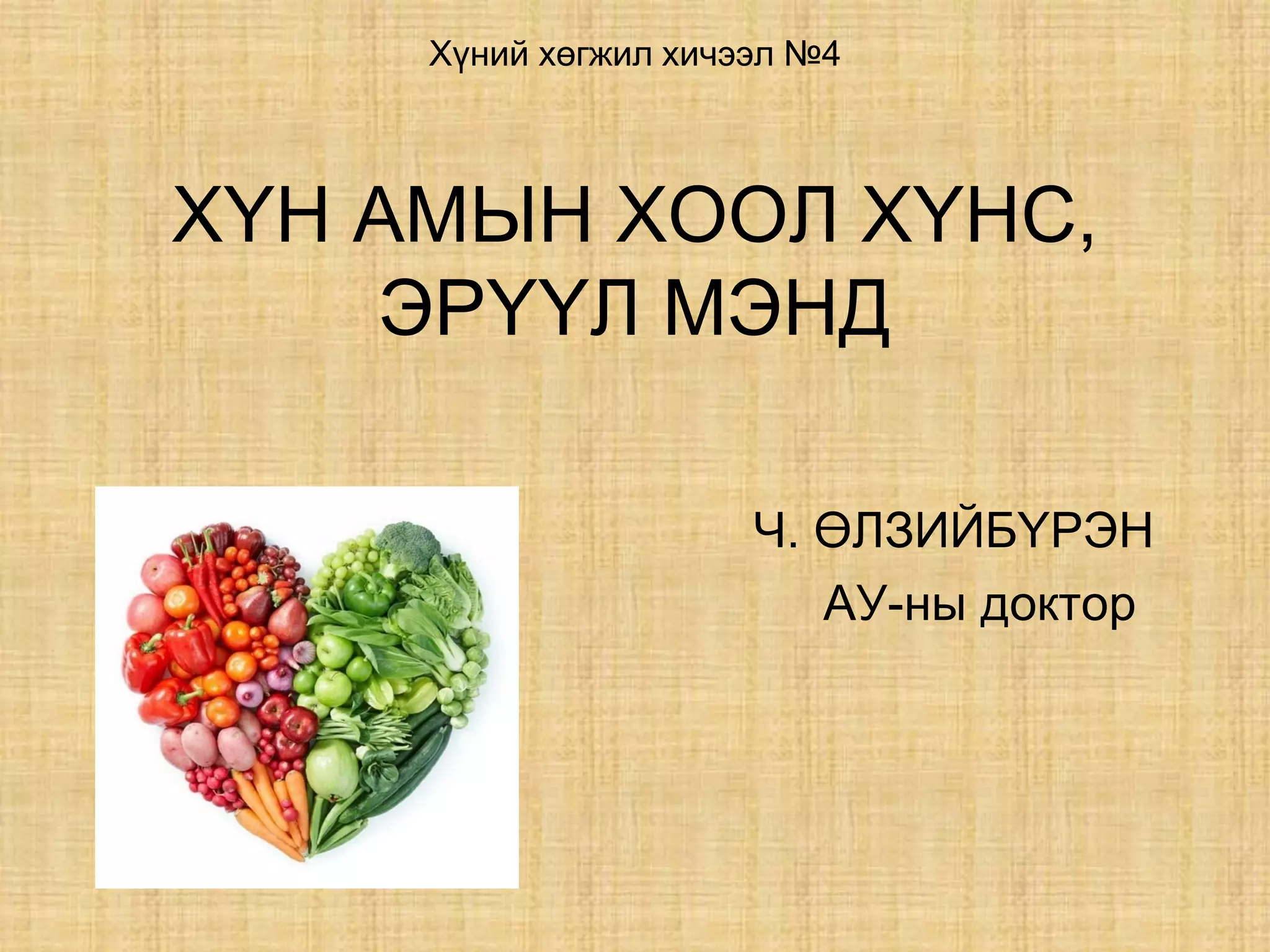 Хүний хөгжил хичээл №4 Эрүүл зөв хооллолтын талаар