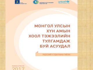 ÎÐ×ÈÍ • Èîä äóòëûí ýìãýãòýé òýìöýõ ¿íäýñíèé õºòºëáºð • Äàâñûã èîäæóóëæ èîä äóòëûí ýìãýãýýñ ñýðãèéëýõ ìîíãîë óëñûí õóóëü • Õ¿íñíèé õàíãàìæ, àþóëã¿é áàéäàë, õîîë òýæýýë- ¿íäýñíèé õºòºëáºð • Ýõèéí ñ¿¿ îðëóóëàõ á¿òýýãäýõ¿¿íèé òóõàé ¿íäýñíèé õóóëü, 2005 он • НЯЛХ, БАЛЧИР ХҮҮХДИЙН ХҮНСНИЙ ТУХАЙ хууль, 2017 он • Ýõ, õ¿¿õäèéí áè÷èë òýæýýëèéí äóòëààñ ñýðãèéëýõ ¿íäýñíèé ñòðàòåãè • Õ¿íñíèé õýðýãëýýíèé ãýð çºâëºìæ