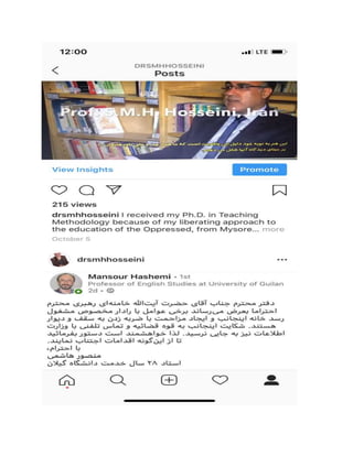 یادآوری: بارها این موارد و حق کشی ها و ستم ها و فسادها را به رییس دادگستری (صادقی) و داستان (درودی) و نیز حفاضت اطلاعات و تخلفات اداری و ارزشیابی قضات در دادگاههای ساجدی، انقلاب و مجتمه امام خمینی مشهد گزارش داده ام اما نتیجه ای که نگرفته ام بماند آزار و اذیت ها و شکنجه های شان را به قول خودشان برای "زجر کش" کردن من چندین برابر کرده اند!!!!؟؟؟؟ غافل از اینکه عصر دقیانوس به سر آمده همانطور که عصر ستم پیشگان و دین فروشان هم به سر می آید – این وعده الهی است. امیدوارم ایت اللله رییسی که گفته بود فسادها را افشا کنید و هدیه بگیرید!؟ این موارد را حداقل مطالعه کند تا فرصت ها را بیش از این از دست نداده اند.