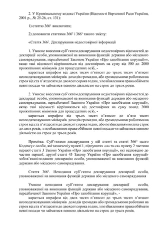 2. У Кримінальномукодексі України (Відомості Верховної Ради України,