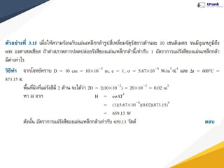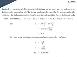 การถ่ายโอนพลังงานความร้อน “ความร้อนที่ให้แก่ระบบจะมีค่า เท่ากับผลรวมของการเปลี่ยนแปลง พลังงานภายในระบบกับงานที่ระบบ ทําให้กับสิ่งแวดล้อม” (ตามกฎการ อนุรักษ์พลังงาน) กฎข้อที่หนึ่งของอุณหพลศาสตร์ (First law