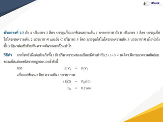 พิจารณากฎของบอยล์และกฎของชาร์ล จะได้ว่า กฎของแก๊ส ความดันปริมาตรและอุณหภูมิสัมบูรณ์ของแก๊สที่สภาวะของ แก๊สแตกต่างกัน 2